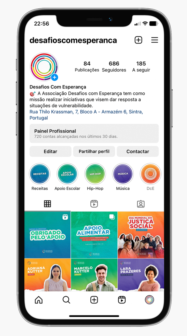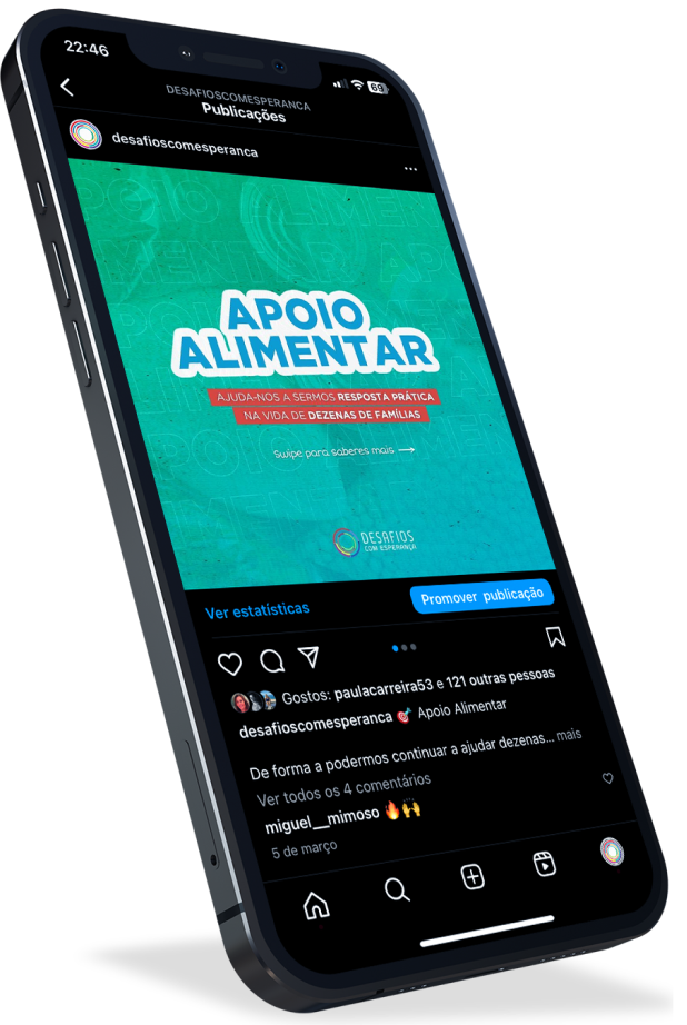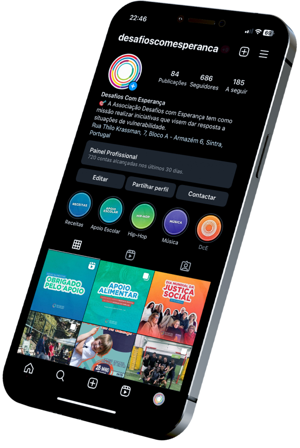 The Desafios com Esperança Association's mission is to carry out initiatives aimed at responding to situations of vulnerability. The great challenge was to “bring life” to the organization's social networks, in order to convey the purpose and sense of mission so present in Desafios com Esperança.